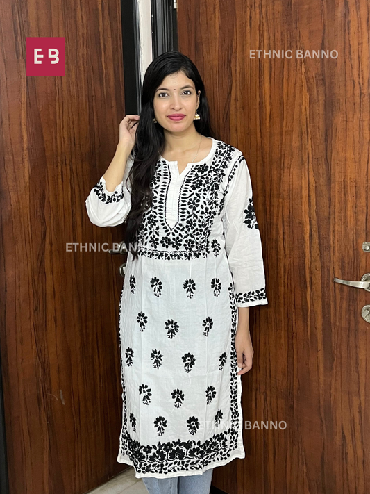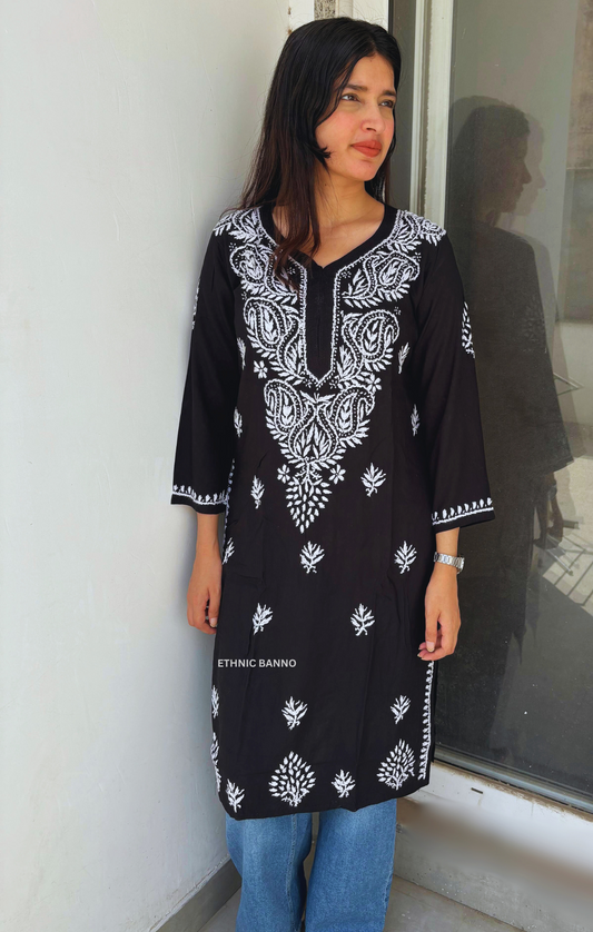 -56% OFFBlack Chikankari Rayon Long Kurti