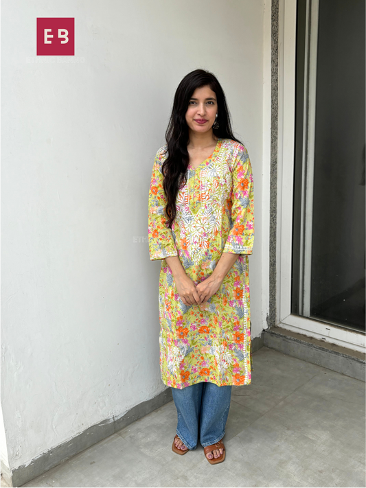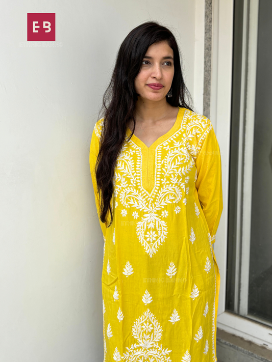 -47% OFFYellow Chikankari Rayon Long Kurti