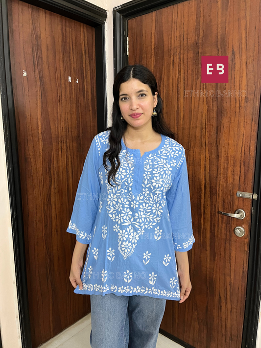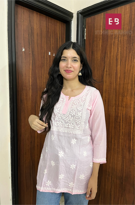 Alaya Baby Pink Chikankari Modal Short Kurti