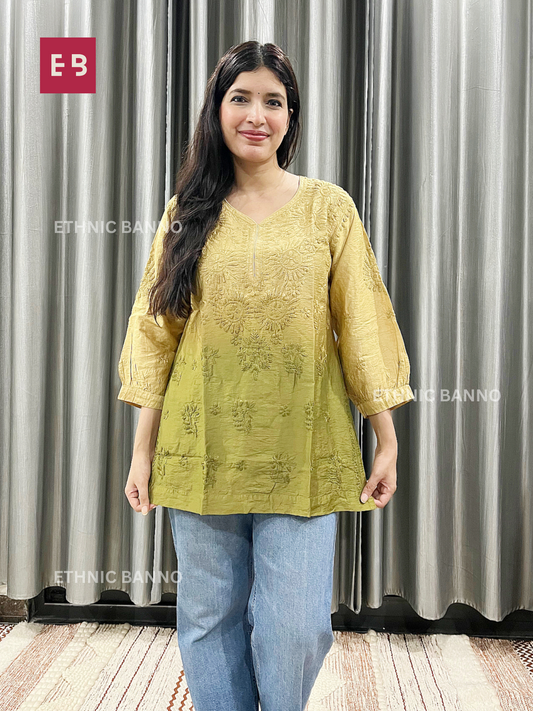 Alina Mehndi Green Ombre Short Chanderi Kurta